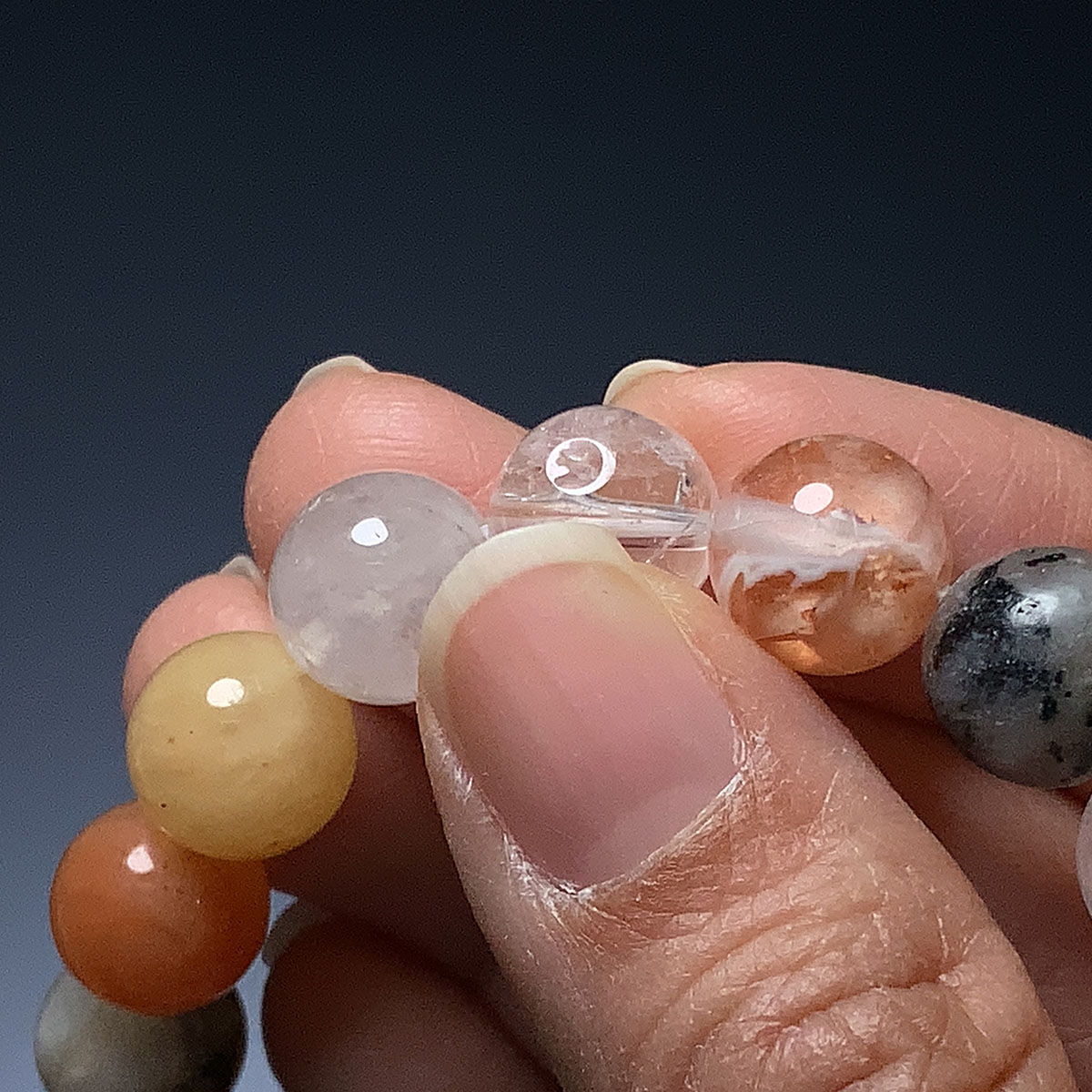 有一顆satyaloka clear珠子有明顯的礦凹,如照片區的圖三所示,雖然有些礦種有天然礦缺,在官方不列為瑕疵,但這顆我覺得可能是天然礦缺導致的磨珠凹洞 (或是磨珠瑕疵),我會補送一顆好的,是我私下購買的單顆,並附上美國原裝夾鏈袋與窗口親筆字跡,哈哈哈。PS. 如果剛好這串手圍太小,補送這顆可以串進去,需要幫你重串也可以,請知會我。圖一圖二是同一串,只是多拍一張不同角度的照片。