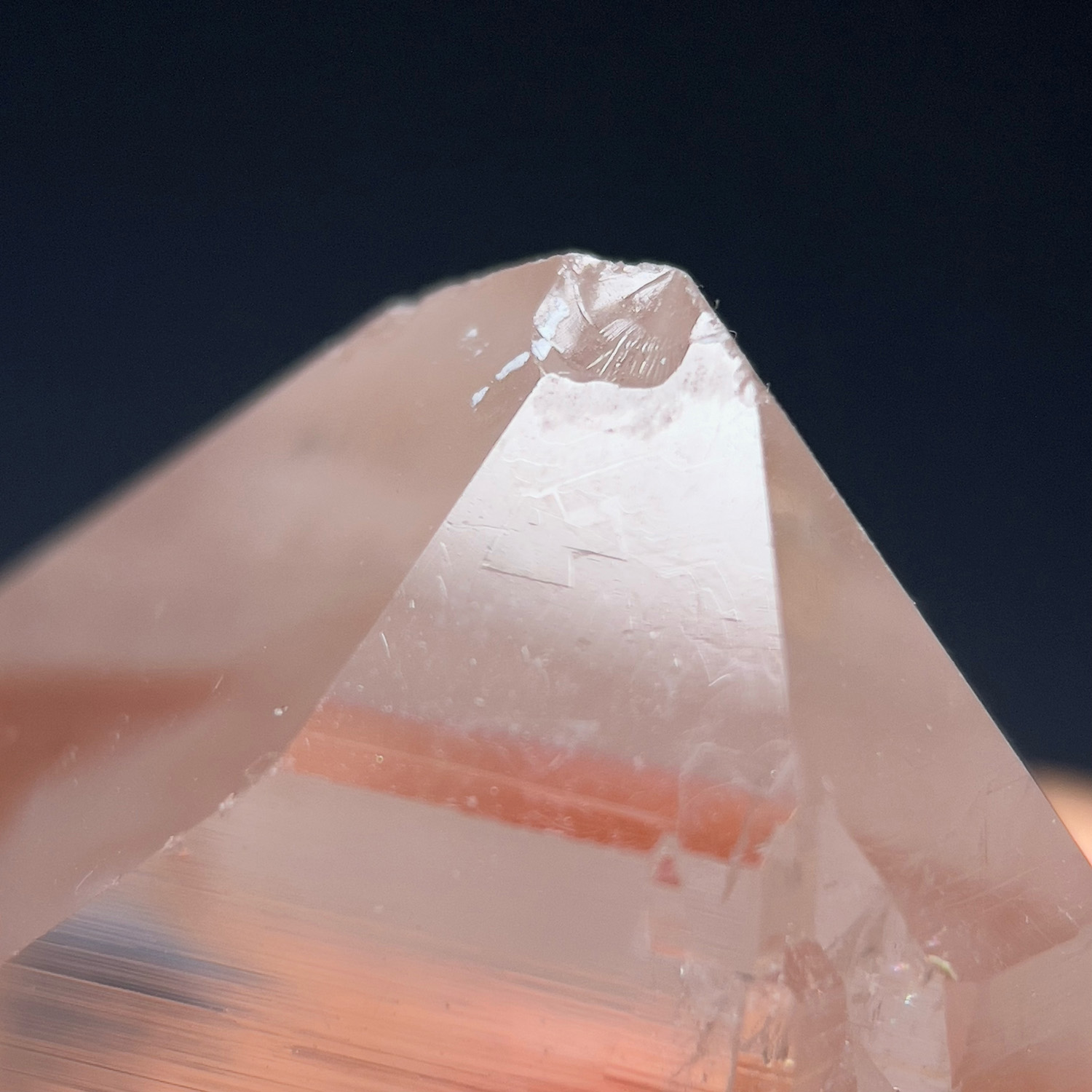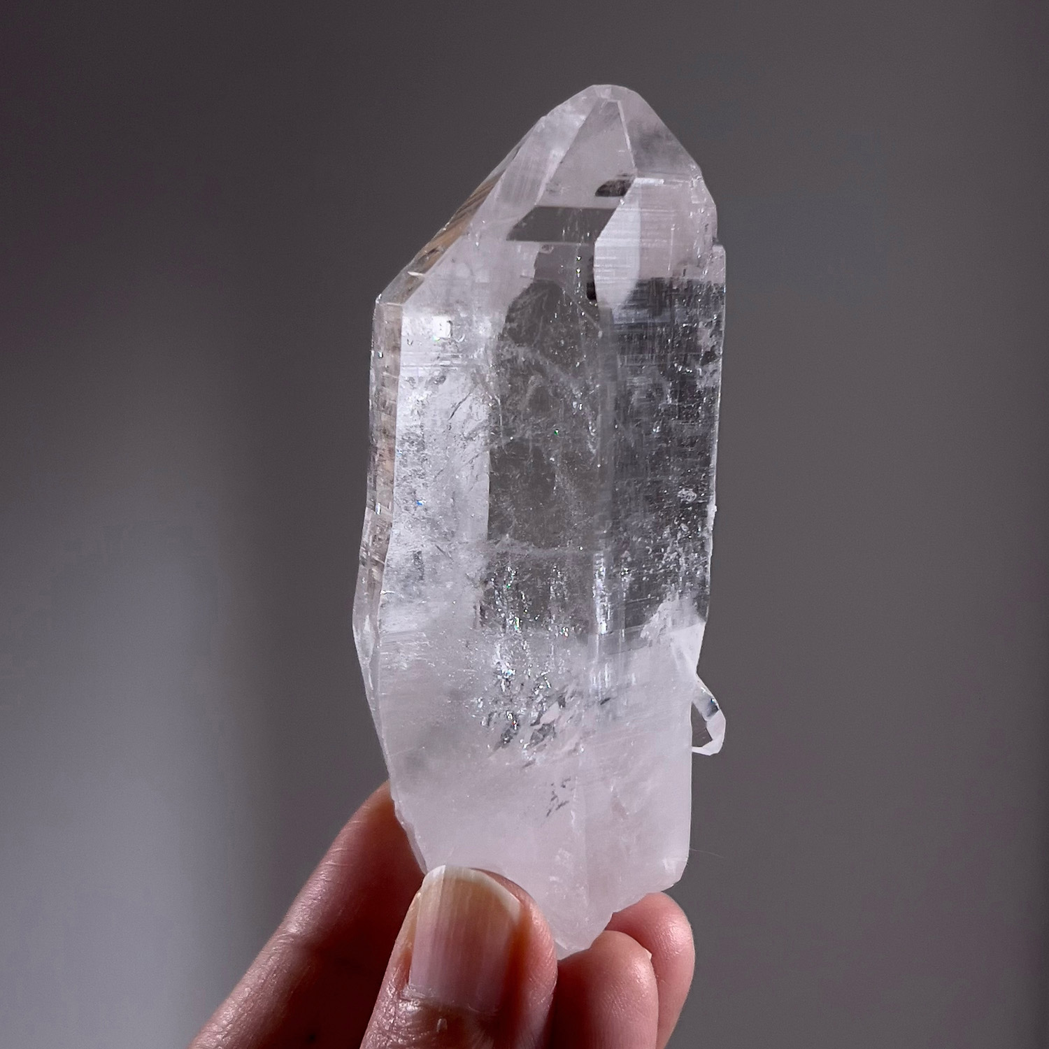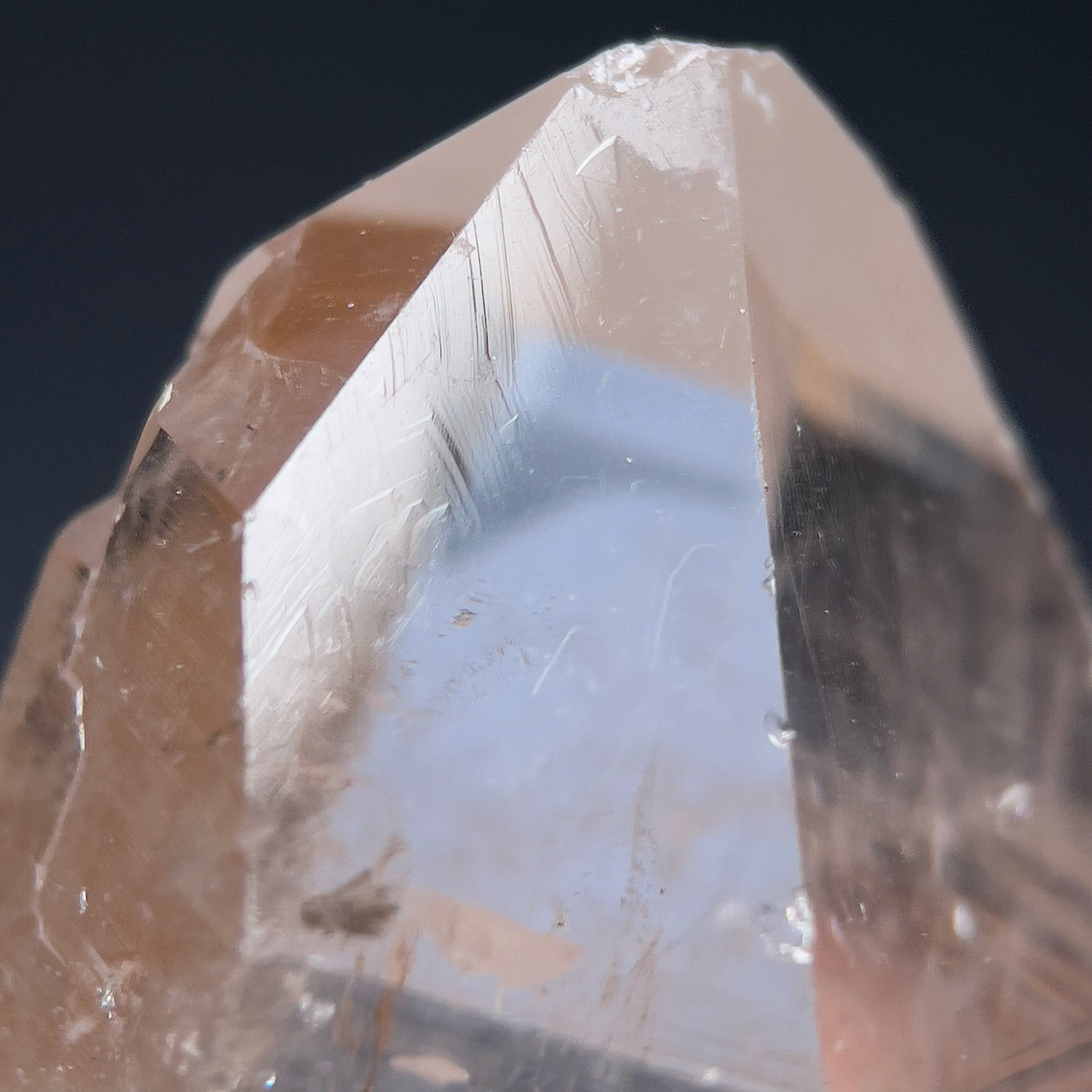表體有經典的喜馬拉雅電路紋,仍帶有印度喜馬水晶的淨透感,柱體有板機與藤壺的晶體特徵。另外,頂部稜面有資料庫記號,在水晶大師Katrina的書中,記載許多型態的大師水晶及新時代的水晶,其中就包含資料庫水晶,資料庫水晶皆有神聖的三角形符號銘刻在它們的稜面上;根據Katrina的論述,萬古智慧被儲存在此種水晶之中,與其適當的調頻連繫時,可揭開遠古知識與深奧的宇宙祕密,這些水晶曾經被亞特蘭提斯與列木里亞人 ,有意識與目的地輸入訊息程式。更多資訊歡迎點選此篇觀看詳細的介紹:資料庫水晶。[注意] 尖側有礦損,影片上應該可清楚,需求完美者請謹慎評估。