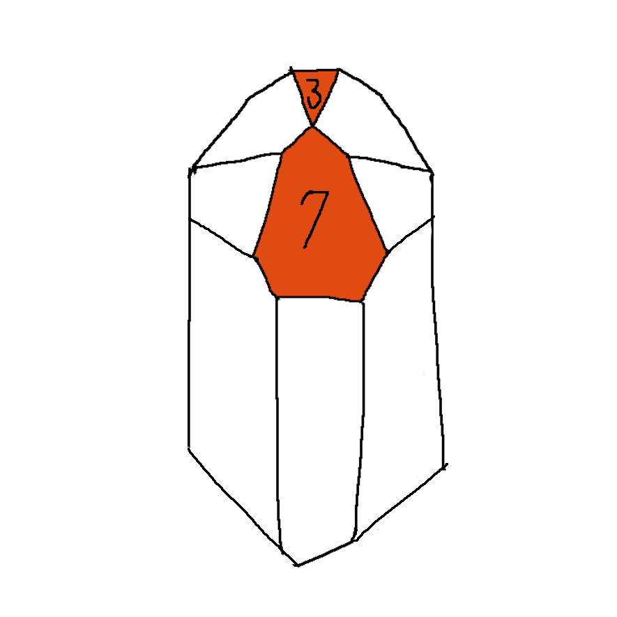 通靈水晶正面中心通常有一個很大的七邊形,而其正對面則呈現一個三角形。依據Katrina的說法七邊形是通往內在真理的門徑,這樣的水晶教導我們如何觸及內在智慧,進入個人內在源頭,獲得真理、然後透過三角形的象徵意涵,將這些獲得再以口語表達將之展現出來。