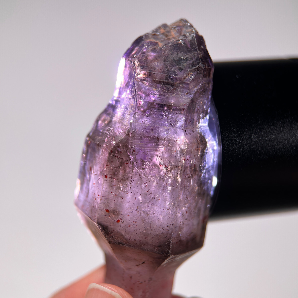 在使用手電筒或光源照射內部,可以看見散射出來的紫色光芒和清晰的內包裹,我建議你一邊轉動它們,一邊看著它們,因為那些散射出來的光芒具有很直接的能量和療癒性,也刺激了眼區的感受。