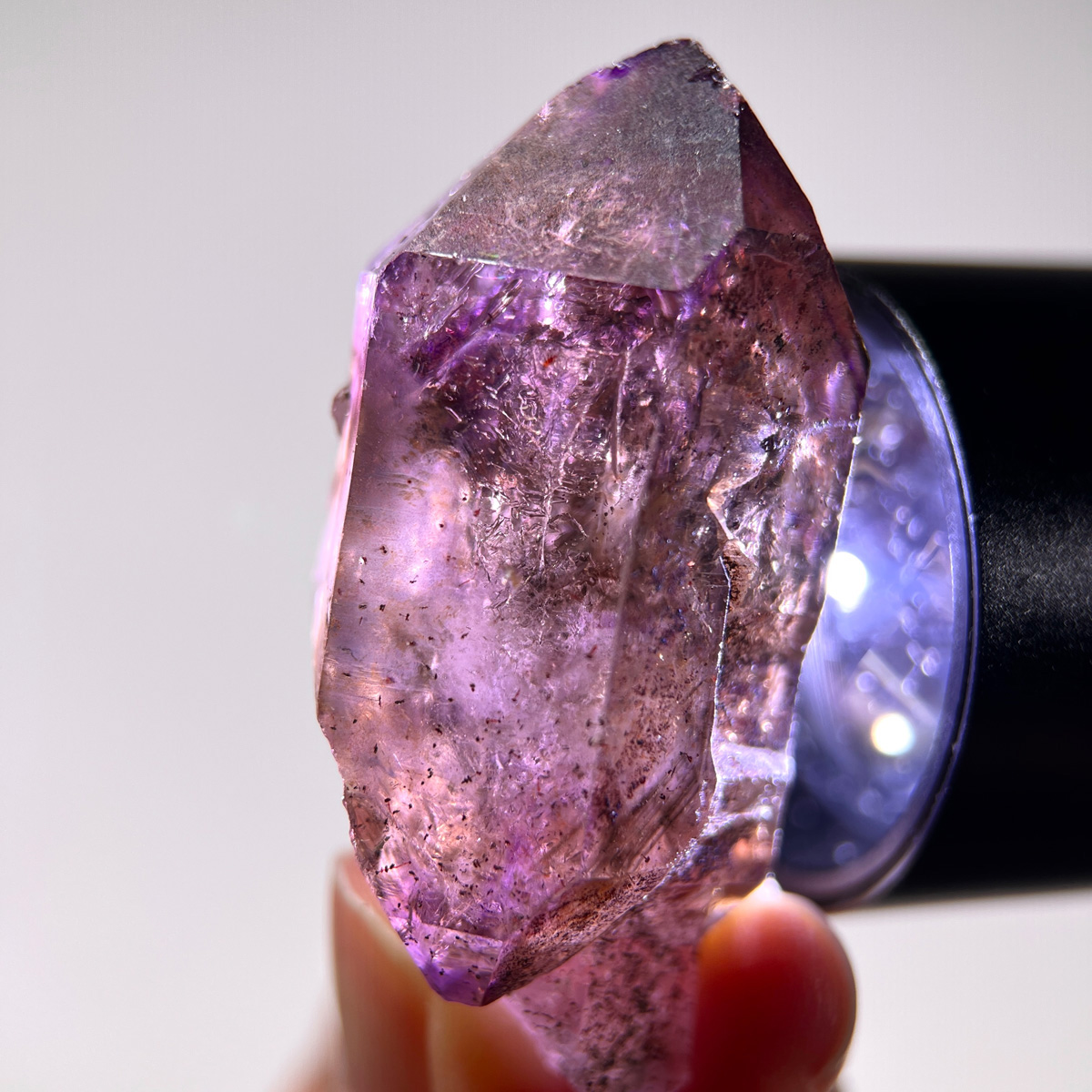 在使用手電筒或光源照射內部,可以看見散射出來的紫色光芒和清晰的內包裹,我建議你一邊轉動它們,一邊看著它們,因為那些散射出來的光芒具有很直接的能量和療癒性,也刺激了眼區的感受。